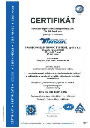 Vývoj, výroba a servis zařízení podléhá systému řízení jakosti podle ISO 9001: 2009, ISO 14001: 2005 a OHSAS 18001: 2008.