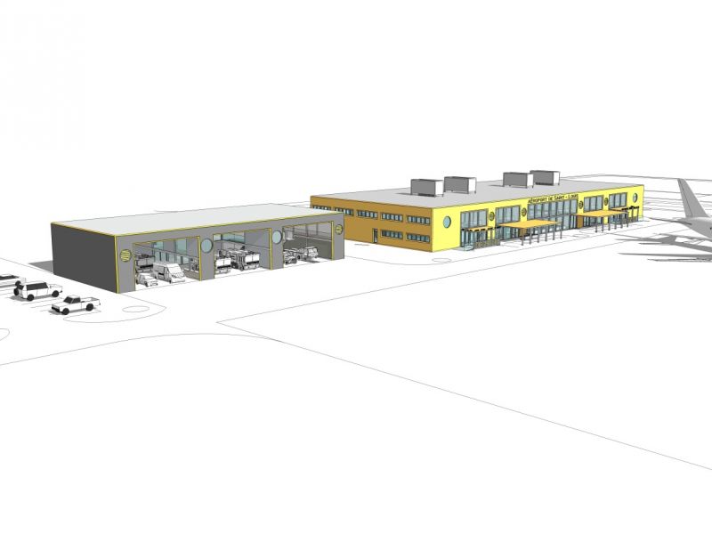 The below visualizations are depicting various examples of solutions of Modular Terminals, Administrative Blocks as well as hangars. The final design may differ from depicted visualizations.